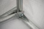 Fiecare modul al tunelului de folie pe cadru metalic are ferestre rulante de 45x30 cm - câte patru pe fiecare parte pentru un total de 8 ferestre. Acestea se rulează fără efort în sus dacă interiorul trebuie ventilat. Mulțumită utilizarea ferestrelor cu plase pentru țânțari, ne asigurăm că culturile noastre beneficiază de reglarea corectă a temperaturii, a umidității și a circulației aerului, atât cât au nevoie legumele plantate.