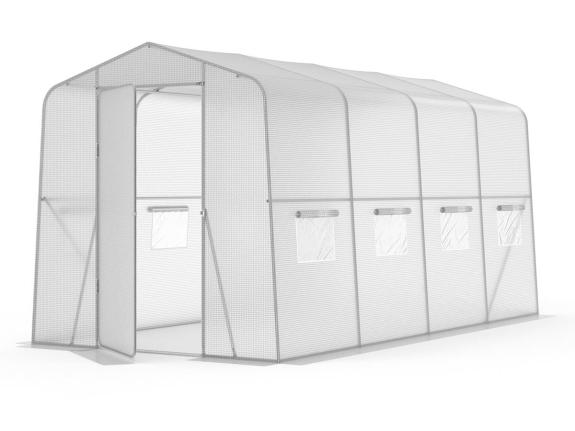 Livrare foarte rapidă, tunel complet, instrucțiuni clare. A fost achiziționat pentru cultivarea roșiilor, în prezent în lăzi, deoarece aceasta nu este locația țintă. Alegerea acestui model a fost determinată de structura ridicată de pe laterale (importantă având în vedere lățimea tunelului), întărită cu trei rânduri de tuburi în partea superioară, și de ușile duble care facilitează ventilația deoarece ferestrele sunt mici. Ușile cu balamale sunt o soluție foarte convenabilă. Sper să reziste câteva sezoane.