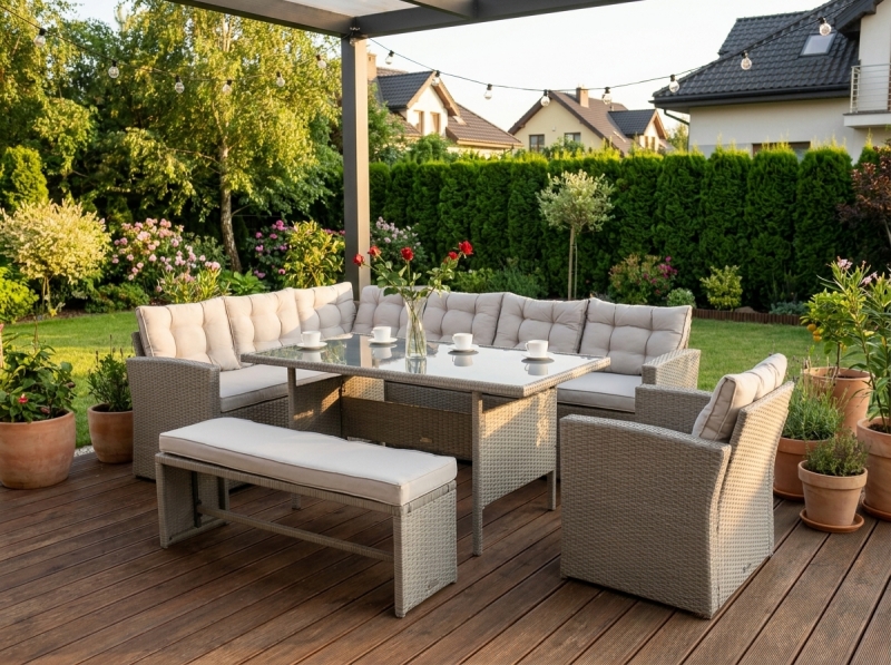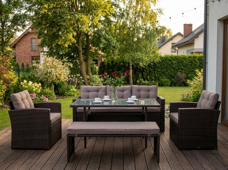 Technorattan jest tworzywem odpornym na warunki atmosferyczne, a materiał poduszek ma właściwości hydrofobowe i łatwo czyszczące. Dzięki temu łatwo zestawy z kolekcji Topiano są łatwe do utrzymania w czystości, a nam nie pozostaje nic innego, jak tylko odpoczywać, cieszyć się wygodą mebli i ciepłym letnim słońcem.