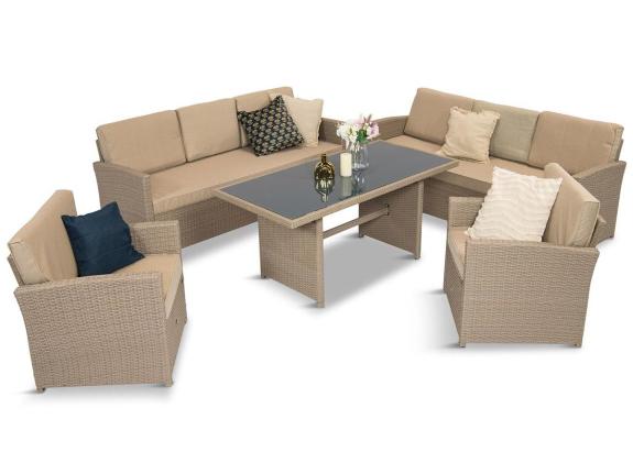 Setul de mobilier din tehnorattan prezentat este o propunere care va satisface așteptările chiar și ale celor mai exigenți clienți. Setul descris include o masă de servit dreptunghiulară mare (145 cm lungime), două canapele mari cu 3 locuri (185 cm) și două fotolii. Pentru fiecare șezut și spătar sunt prevăzute o perne confortabile. Setul este fabricat din materiale de foarte bună calitate, cu cea mai mare atenție la detalii. Acest mobilier este potrivit nu numai pentru exterior, ci și pentru interior.
