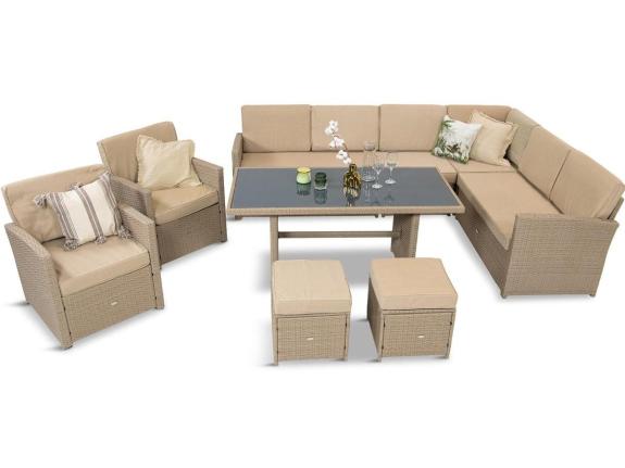 Acest set de canapele bej arată foarte elegant și creează o atmosferă armonioasă în grădină sau pe terasă. Este extrem de confortabil și primitor, dar și plăcut ochiului - perfect pentru relaxare și petreceri în aer liber.
