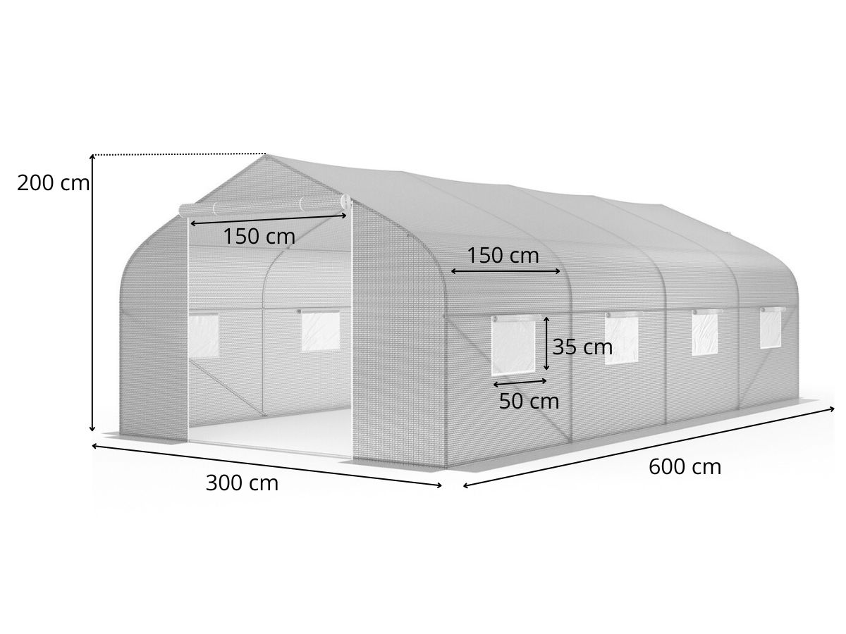 Solarul tip tunel pentru grădină cu cadru metalic are o lățime de 3 m și o lungime de 6 m, astfel încât suprafața totală de cultivare este de 18 m2. Orice tip de cultură va prospera sub o astfel de protecție: fructe, legume și, de asemenea, flori ornamentale. Chiar și în caz de vreme nefavorabilă, plantele vor crește bine. Tunelul cu folie are o înălțime de 2m, astfel încât să puteți munci în poziție dreaptă și să faceți activități de grădină confortabil, chiar și pentru persoanele mai înalte. O intrare rulantă lată de 150 cm de ambele părți ale tunelului permite introducerea în interior a uneltelor mari sau a vaselor. Ușa poate fi închisă cu un fermoar cu două fețe, astfel încât tunelul poate fi închis confortabil atât din exterior, cât și din interior. Construcția solidă protejează în mod corespunzător plantele de intruși și de vânt.